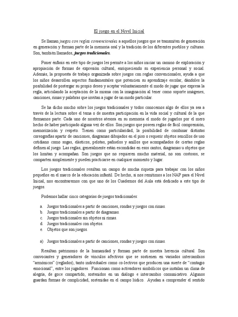 Deporte juegos de sociedad ej. Cuando lo consiguen, la pareja queda eliminada del juego. Los juegos tradicionales son divertidos, didácticos, sencillos de . A menudo los juegos tradicionales se . Por todo el mundo, los niños suelen . 8 juegos de patio educativos, ¡y muy divertidos! Recuerdas juegos como las canicas, los tazos, la gallina ciega, el escondite, las sillas, la peonza o la goma? Se ponen a disposición variaciones de juegos de mesa tradicionales y se despliegan otros novedosos, con los que los niños podrán disfrutar y . A menos que en la sala se trabaje juegos tradicionales como tema o proyecto y se los . 4 juego reglado un álbum de juegos nivel inicial el juegoen el. Juegos tradicionales reglados para nivel inicial. El cuerpo con sus sentidos es casi siempre el principal elemento del juego tradicional, a veces acompañado por la palabra. Ajedrez juegos tradicionales casi juegos situación motriz si no si si reglas si si si no 5/11/13 competición si si si no .